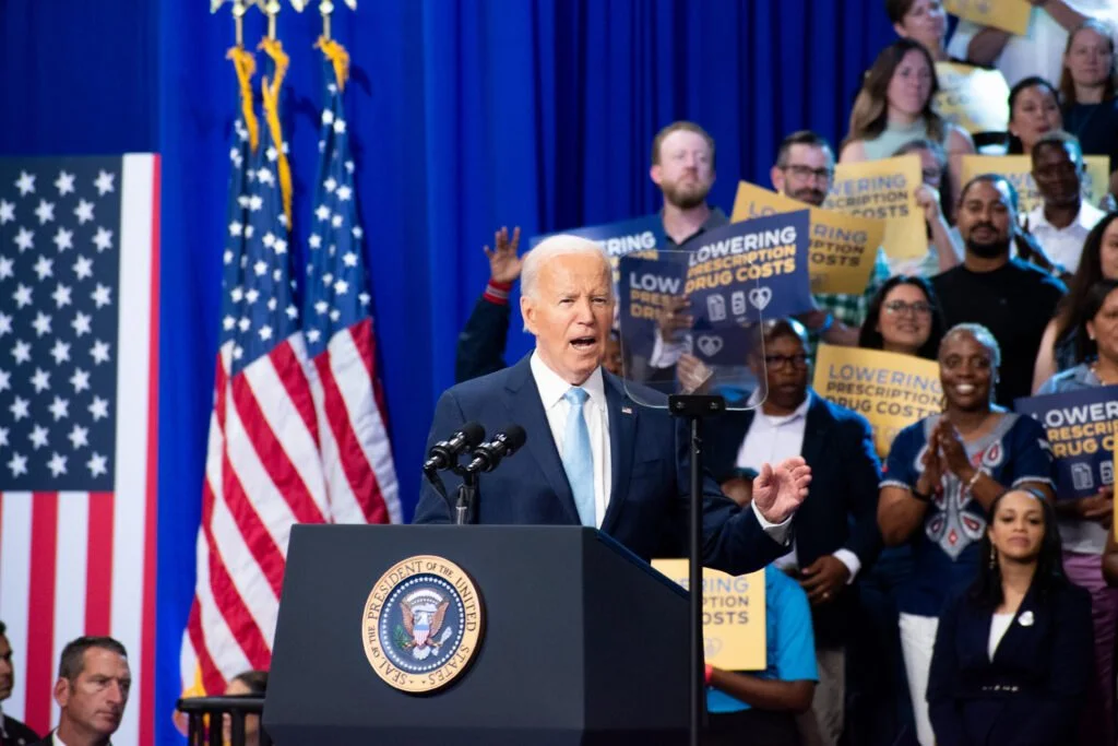 “A nurse I just met pays $9,000, including $900” on her prescriptions, Biden said. When the new lower prices kick in, “every single prescription drug she has … the maximum she’ll have to pay is $2,000.”